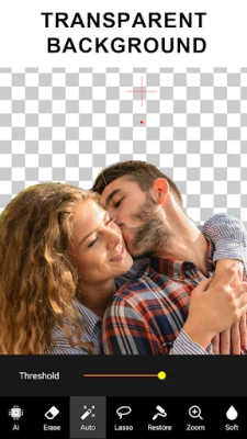 With this app, you can remove the background from any picture, save the transparent image, and add a different background of your choosing in a few seconds. Just select the area to be cut out with tools, or use the AI auto background remover, add a custom background, and share your masterpiece with friends.