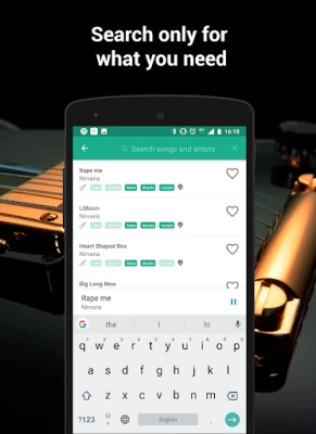 This app containt tons of guitar and drums backtracks and database will be constantly updated with Rock, Jazz, Blues, Dance, Reggae, Latin, National, Soul, Hip Hop, Metal, Country backing tracks.