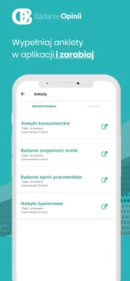 Pobierz aplikację Badanie Opinii i zacznij zarabiać! Podziel się z nami swoją opinią, wypełniaj ankiety w dowolnym miejscu i czasie ze swojego telefonu. Zbieraj punkty i wymień na gotówkę - wystarczy, że podasz kilka informacji o sobie, a już po chwili będziesz mógł otrzymać swoje pierwsze ankiety. To Ty decydujesz, które ankiety chcesz wypełnić. Aplikacja pozwala na zapraszanie znajomych, dzięki czemu jeszcze szybciej zbierzesz punkty potrzebne do wymiany.
