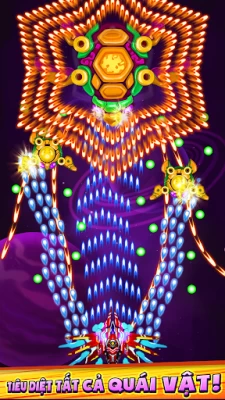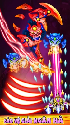 - Trận chiến Boss khốc liệt: đánh bại những tên Boss trùm, bắn quái vật vũ trụ để bảo vệ ngân hà trong trò chơi máy bay này.