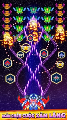 Sự kết hơp hoàn hảo của các thể loại game arcade cổ điển như space shooter, ban máy bay alien-shooter, game bắn galaxy attack.