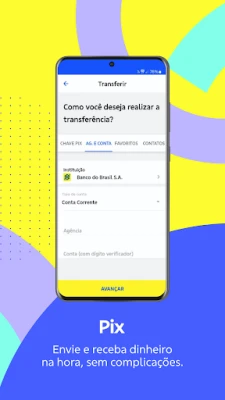 • Pagamentos: fazer pagamentos de boletos e impostos escaneando QR Code, Pix instantâneo, parcelamento no Pix e organizar dívidas.