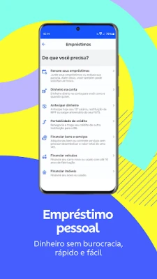 • Empréstimo: contratar empréstimo pessoal, empréstimo consignado, fazer financiamento de imóveis e de automóveis.