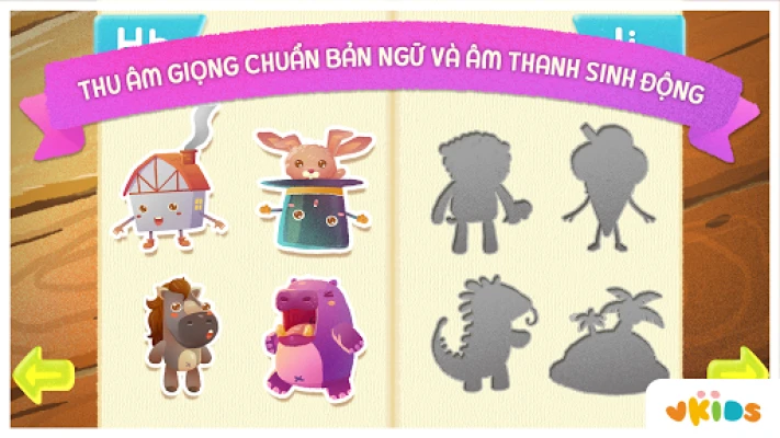 Bé sẽ được học từ vựng và bảng chữ cái tiếng Anh bằng các nhân vật hoạt hình thú vị. Vkids Alphabet giúp bé luyện viết chính tả với các chữ cái và học phát âm chuẩn từ vựng tiếng Anh thông qua giọng phát âm chuẩn bản xứ. Ngoài ra, ứng dụng còn giúp bé nhận biết các chữ cái (viết hoa và viết thường) và cách phát âm chuẩn của những chữ này.