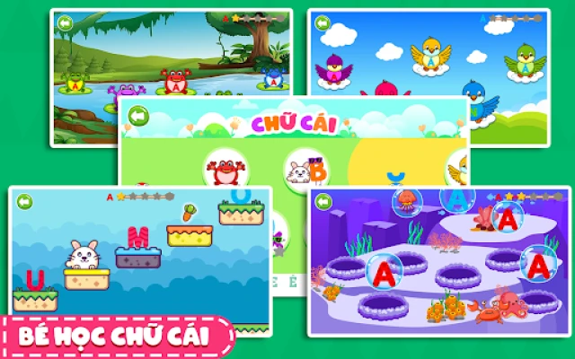 ⭐ Bé Học Chữ Cái” là nơi con bạn có thể chơi các trò chơi chữ cái dành cho trẻ em và các trò chơi học chữ dành cho trẻ mới biết đi. Hãy bắt đầu trò chơi bảng chữ cái này!