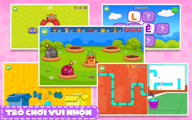 👉 Không chỉ vậy, các trò chơi giáo dục dành cho trẻ em và các trò chơi mầm non được thiết kế chuyên nghiệp giúp bé sáng tạo và phát triển trí tuệ.Thông qua việc hoàn thành các trò chơi, sẽ giúp bé tiếp thu một cách tự nhiên và dễ dàng nhất.