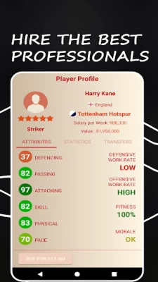 • Buy and sell players. Negotiate the better value. Build your dream football starting eleven