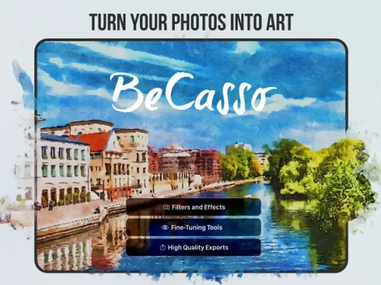 Create stunning pieces of art from your photos. Discover BeCasso's new watercolour, oil and sketch filters. You won't find anything better. Download BeCasso now FOR FREE!