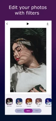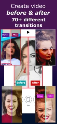 Create stunning videos with over 70 different transitions. Choose two photos and compare them easily.You can customize your video with animated texts, filters and logos.