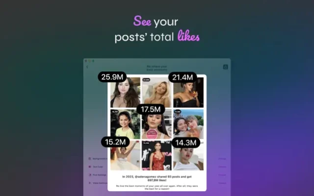 The Best Nine app is the best way to recapitulate the current or previous years with a layout of your top nine Instagram posts. Using the app is easy, just insert your Instagram username and wait for the Best Nine collage to be generated. Then make the finishing touches like adding the tag with total likes or likes per post number, changing the background, or adjusting borders for a more pleasant look. The final layout will consist of a 3x3 grid displaying your most popular photos and reels on Instagram. Your followers will love it, and you will, too.