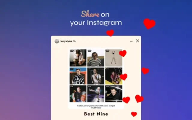 Generate a collage of your 9 best Instagram moments of 2023 with photos, videos, and reels using the Best Nine app and share them with your followers.