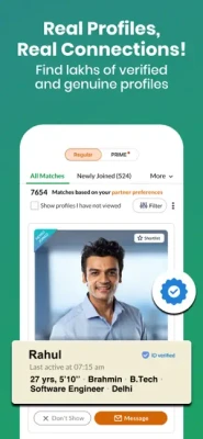 Access Bharat Matrimony “Prime”: Get genuine profiles that are government ID-verified.