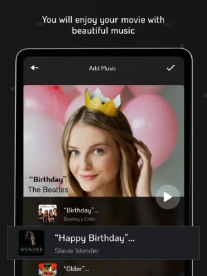 Birthday Movie Maker with Music apply for make amazing video from your gallery photos with your selected music as well as beautiful frames to apply. Arrange the photos in order with the perfect background, music and animation to create a video of your own.