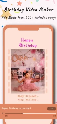 'Happy Birthday Video Maker' allows you to make anything you want to wish someone. To feel special, you can customize a birthday cake by writing your name on birthday cake. By adding birthday stickers, emojis, and quotes on them, birthday movies can be made more appealing. In this birthday app, you can make and share birthday videos.