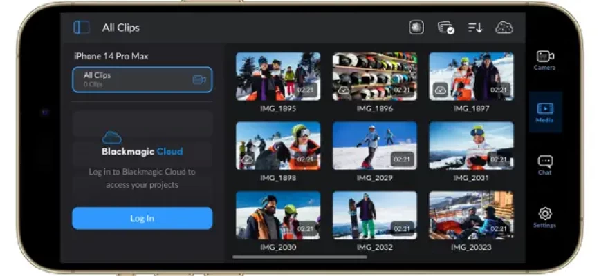 The Blackmagic Camera media tab has all the controls you need to browse or scrub clips for quick review, search and sort and view the upload status of your media. Access your media from Blackmagic Camera’s all clips folder by choosing the Media button to see the thumbnails for each clip you have stored. Plus, you can save to the files folder on the phone, send it to Blackmagic Cloud Storage via Blackmagic Cloud or manually choose which clips to upload to a project library. You can even sync media from Blackmagic Camera directly into the DaVinci Resolve project so you’re ready to edit!