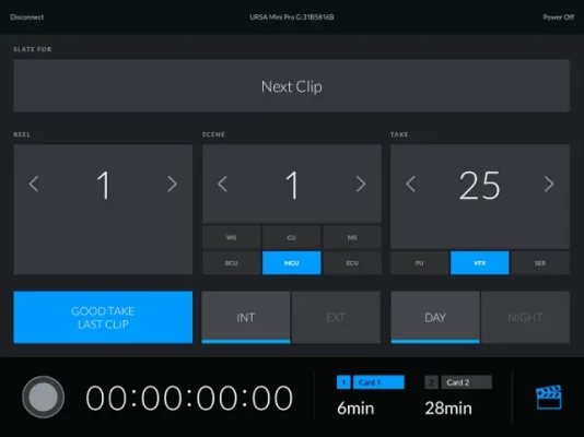 Get full control of your camera from up to 30 feet away, so you can remotely change camera settings, control the lens, adjust metadata and trigger recording. On URSA Mini Pro cameras you can also remotely power the camera on or off. Blackmagic Camera Control is ideal when you need to control cameras in hard to reach places such as on cranes, drones, gimbals and more! It’s also a great solution for camera assistants who need to quickly update metadata such as shot, scene and take numbers.