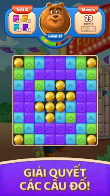 Có nhiều cách khác nhau để hoàn thành màn chơi. Sử dụng tên lửa để xóa một hàng hoặc bom để dọn dẹp một khu vực hình vuông. Thử kết hợp các vật phẩm hỗ trợ để trải nghiệm một màn trình diễn đầy bùng nổ. Sử dụng các loại đồ chơi khác nhau và càn quét tất cả các khối với chiến lược và thủ thuật đúng đắn. Đồ họa tiên tiến, tạo cho người chơi cảm giác đang tham gia một trận đấu 3D.
