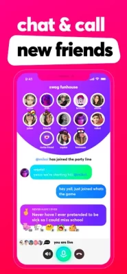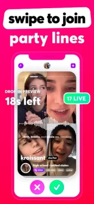 HUUUUGE PARTY LINES Drop in and preview voice chats with groups of new people that match your age and interests, and join in on the conversation to start talking and meet new friends.