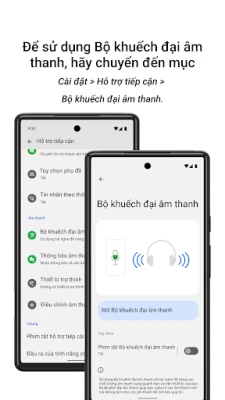 Sử dụng nút hỗ trợ tiếp cận, cử chỉ hoặc Cài đặt nhanh để bật và tắt Bộ khuếch đại âm thanh. Tìm hiểu thêm về nút hỗ trợ tiếp cận, cử chỉ và Cài đặt nhanh tại: https://support.google.com/accessibility/android/answer/7650693