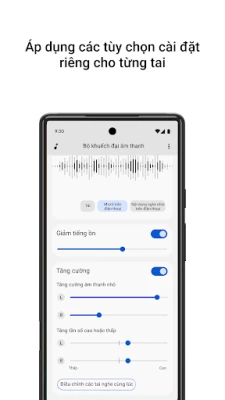 Bộ khuếch đại âm thanh giúp những người nặng tai có thể trò chuyện hằng ngày và nghe âm thanh xung quanh dễ dàng hơn, chỉ với điện thoại Android và một cặp tai nghe. Bạn có thể sử dụng Bộ khuếch đại âm thanh để lọc, tăng cường và khuếch đại âm thanh xung quanh cũng như trên thiết bị của mình.
