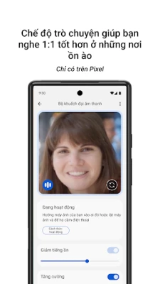 Tập trung vào giọng của người nói trong môi trường có tiếng ồn với chế độ trò chuyện. (Có sẵn cho thiết bị Pixel 3 trở lên.)