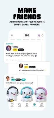 Boo is an accepting, tolerant, and judgment-free space for everyone. Unlock functionalities by being a good person and earning love, our social credit system.
