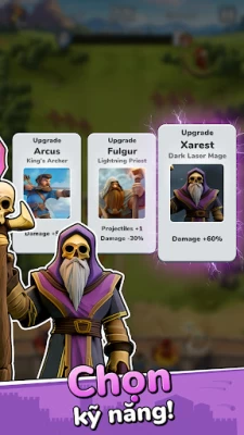 Trải nghiệm lối chơi phòng thủ tháp nhàn rỗi tối ưu. Bảo vệ lâu đài của bạn khỏi những đợt tấn công của orc bằng cách chọn lựa và kết hợp các kỹ năng một cách chiến lược để giải phóng sức mạnh chiến đấu ma thuật.