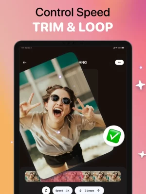 • Share your boomerang creations with just a tap, captivating your audience across platforms like Instagram, TikTok, Facebook, and iMessage.