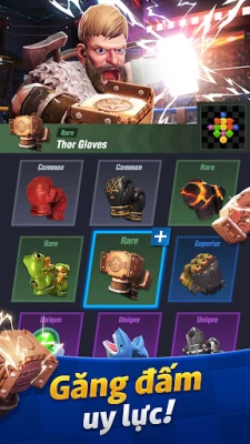 Boxing Star - PvP Match 3 trang bị cho bạn các loại găng đấm với nhiều khả năng. Sử dụng các kỹ năng thần sầu và tung ra những đòn đấm dũng mãnh! Hãy thử trải nghiệm Mega Punch Gloves (Găng đấm siêu khủng) để hạ gục đối thủ bằng một đòn duy nhất.