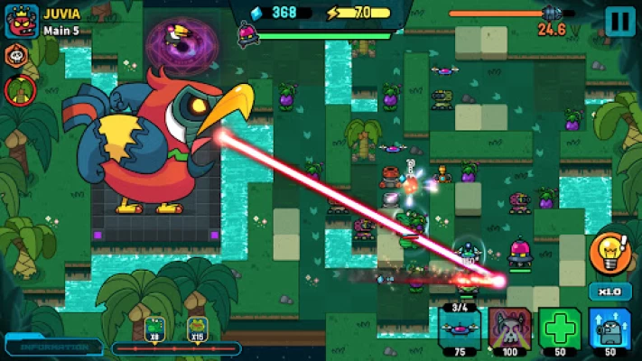 Try lots of different strategies, from blocking all paths and hiding safely behind your walls, to guiding monsters down a long line of fire. Use the unique towers and barriers to come up with your own original style of play. Try blasting monsters so hard they can't approach, mixing monsters up until they can't function properly, or focusing on defense and recovery to build an impenetrable fortress. You can even try backing a bunch of monsters into a corner and wiping them all out at once, or lining them up and taking them out one-by-one.
