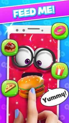 By playing with and taking care of Bruno, you'll progress through various game levels. Complete challenges, earn rewards, and unlock exciting new features as you advance. The more you play with your slime pet, cuddle it, pamper it and take care for it, the more coins you earn to unlock new features and items that you can use to treat your pet and give it funny, adorable new looks: new slime types, colors, awesome decorations, and tasty food to feed your pet with.