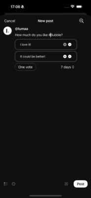 - A rich post composer with polls, emojis, and attachments