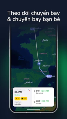 Để người thân theo dõi hành trình của bạn theo thời gian thực! Tính năng Chuyến bay của Bạn bè giúp gia đình và bạn bè cập nhật trạng thái chuyến bay, nhận thông báo khi bạn hạ cánh. Hoàn hảo để phối hợp hành trình không lo lắng!