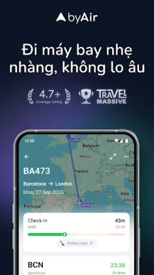 Theo dõi chuyến bay của bạn với byAir – ứng dụng theo dõi chuyến bay tối ưu cho trạng thái thời gian thực, cảnh báo chậm trễ và thông tin sân bay. Nhận theo dõi chính xác, cập nhật tức thì và dự đoán cho tất cả hãng hàng không. Lên kế hoạch hành trình liền mạch: kiểm tra giờ đến/đi trên bảng điện tử, xem bản đồ sân bay, tìm phương tiện di chuyển và theo dõi chỉ số chậm trễ cùng tỷ giá hối đoái – tất cả trong một ứng dụng duy nhất.
