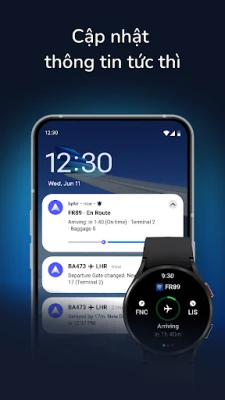 Nhận thông báo tức thì về các chuyến bay bị trễ, thay đổi cổng, hủy chuyến và nhiều thông tin khác với Cập nhật Trực tiếp và tiện ích. Truy cập trạng thái chuyến bay trực tiếp của bạn ngay từ màn hình chính, màn hình khóa hoặc đồng hồ thông minh Wear OS. (Cập nhật Trực tiếp yêu cầu Android 16 trở lên.) Ứng dụng Wear OS cũng bao gồm ô xem nhanh và tiện ích mặt đồng hồ.