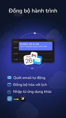 Sử dụng dữ liệu chuyến bay sẵn có từ FlightRadar24, App in the Air hoặc Flighty. Chỉ cần tải chi tiết chuyến bay lên byAir để quản lý mọi hành trình ở một nơi duy nhất!