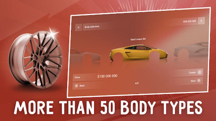 Create the car of your dreams: want a premium sedan? A sports coupe? A passable SUV? Or a family hatchback? Many common types of bodies with their settings are available for construction.
