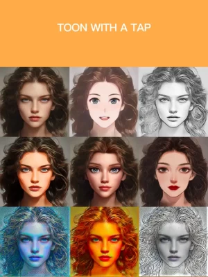Powered by AI technology, this picture editor creates your favorite anime, caricature or pixar inspired cartoonify just in seconds. Become your favorite 3d cartoon. All trending effects and filters including; toonify, artisan portrait editor and much more with awesome backgrounds and digital art layout.