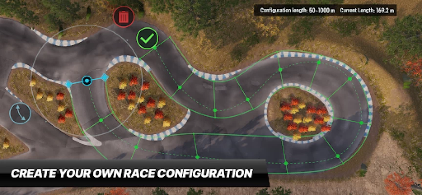 Create the configuration of your dreams! Choose a track and adjust your configuration for tandem races by editing the markings, placing opponents, and adding obstacles and fences.