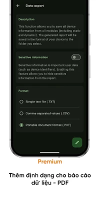 • Chia sẻ thông tin thiết bị của bạn bằng cách sử dụng "Xuất dữ liệu";