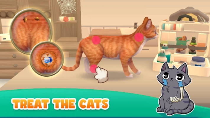 In the old house there used to live an old lady who took care of all the cats. Now you are in her place and take over all the tasks. Every now and then a cat comes to your front door and wants to be taken in by you. But do you have enough space? Make sure that you have done all the chores in the house, the rooms are tidy and decorated and the treatment room is ready for small examinations. A vet is at your side to help with the cat care.