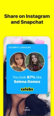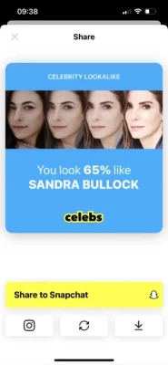 Results for Instagram and Snapchat stories: Share your celebrity lookalike results with friends on social media.