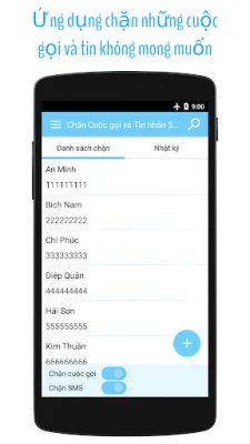 * Nhật ký chặn cuộc gọi và tin nhắn SMS.