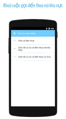 * Chặn tất cả số điện thoại bằng mã vùng.