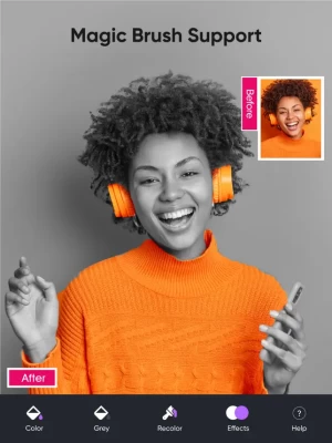 2. Colorize ,pick the color you like and paint your photos, check out the screen shots to fell what you can do with this app