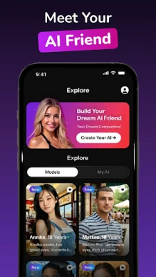 Our AI chat system is optimized for speed and performance, ensuring smooth and responsive conversations with your AI girlfriend, AI characters, and AI friends at all times. The clean interface makes chatting simple and enjoyable, whether you're exploring AI character stories or having daily conversations with your AI girlfriend.
