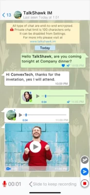 ChatDip messenger is 100% free for text, picture, audio and video messages with following features.