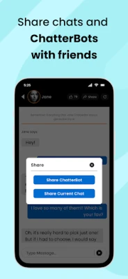 Do share your ChatterBots and chats with your friends and let them join the fun! And please feel free to share a review or feedback with us by emailing us on support@chatterapp.ai.