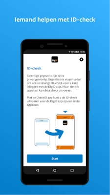 Niet iedereen beschikt over een telefoon met NFC-lezer. Met de CheckID app van DigiD helpt u iemand de ID-check toe te voegen aan zijn of haar DigiD app. Uw telefoon voert alleen de eenmalige controle van het identiteitsbewijs uit. Uw eigen DigiD inloggegevens zijn hiervoor niet nodig. Er worden geen gegevens opgeslagen op uw telefoon. Meer informatie op: https://www.digid.nl/id-check