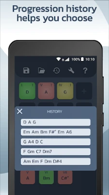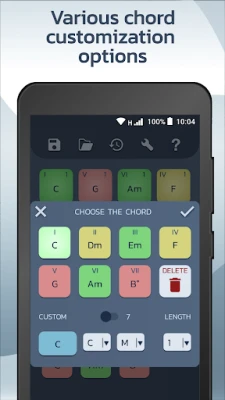 Now it's easier to compose your music, discover the best placement of the chords following a color scheme, test the sound of each chord and find a direction in a world of infinite possibilities.